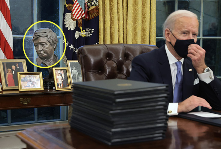 A bronze bust of Chavez sat behind the Resolute Desk on Biden’s first day in the Oval Office. He removed the bust of Winston Churchill that was prominently displayed throughout Donald Trump’s first term.