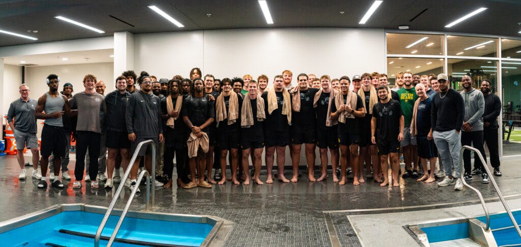Thankfully for current athletes at Baylor, the days of bringing a cold tub to center court for baptisms are over. The Bears have new athletic facilities, which include a large, warm therapy tub. Some say it’s perfect for baptisms.
