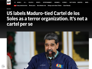 A CNN headline declared the cartel “may not technically exist.” AP said, “it’s not a cartel per se.” USA Today cited experts who claimed Cartel de los Soles “is not a real drug cartel.” New York Times columnist Michelle Goldberg called Cartel de los Soles “a group that doesn’t exist.” The Guardian and other outlets echoed similar sentiments.