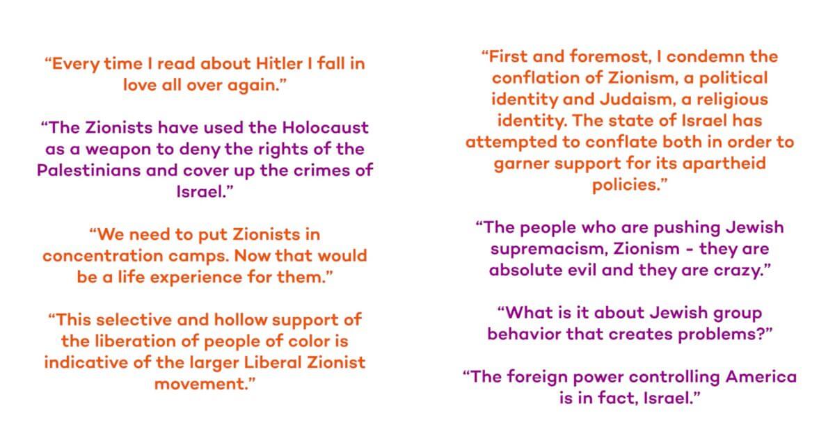 It focuses on a training video produced by the Jewish United Fund that shows quotes from Ku Klux Klan leader David Duke alongside those from anti-Israel activists to make the point that “you can’t tell the difference.”