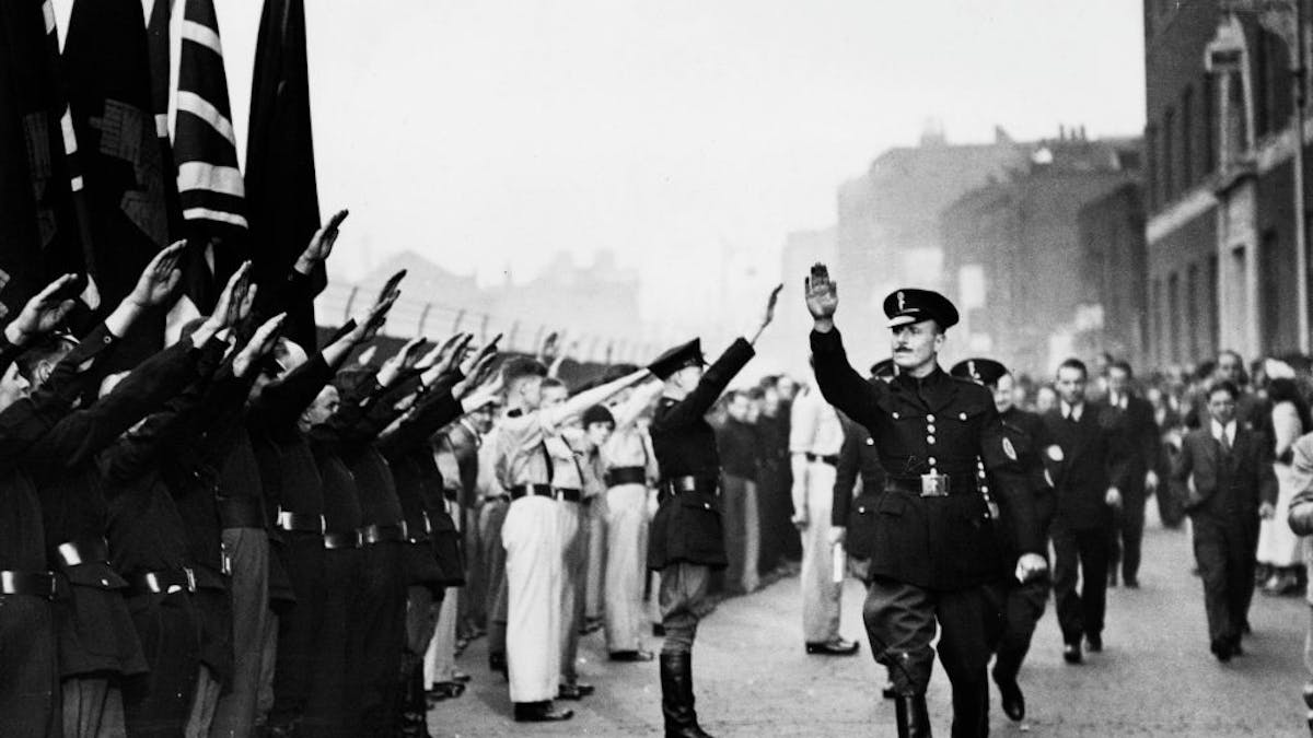 Although he is never named, images of Oswald Mosley flash throughout the video, fists clenched, rallying so-called patriotic Britons. But search his name and you’ll also see images of Mosley and his fellow British Union of Fascists (BUF) members performing Roman salutes in Mussolini-style uniforms, complete with imitation armbands bearing the BUF lightning bolt, drawing heavily from Nazi aesthetics. Mosley wasn’t the leader of a legitimate opposition party. By the time of his arrest, he wasn’t even an MP, and his party, the British Union of Fascists, operated outside Britain’s democratic system. These are hardly minor details, yet are conspicuously absent from Carlson’s video.