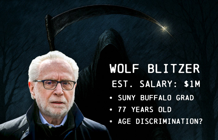 Wolf Blitzer: He’s been around since the 1990s, but earns a rookie salary. Paramount might let him stay if he agrees to read the teleprompter for free. He’s way too old to start a Substack.