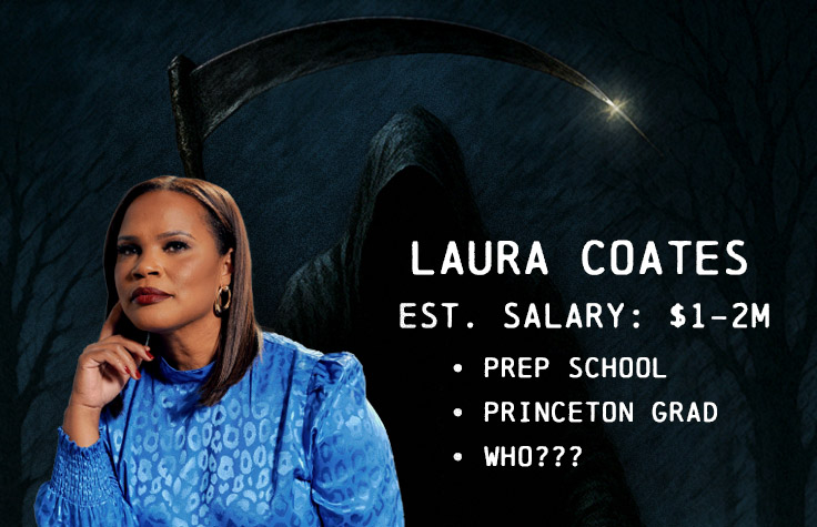 Laura Coates: Non-white personalities are rare at CNN, and relatively underpaid and overlooked for promotions. The network could have made Coates its senior legal analyst in 2021, but opted to bring back Jeffrey Toobin—the infamous Zoom call masturbator—instead.