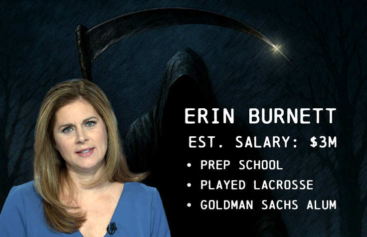 Erin Burnett: Once described as “hot” many years ago, the evening host offers a safe space for Democrats to deliver their talking points. Trump doesn’t like her, so she’ll probably be gone if the merger goes through.