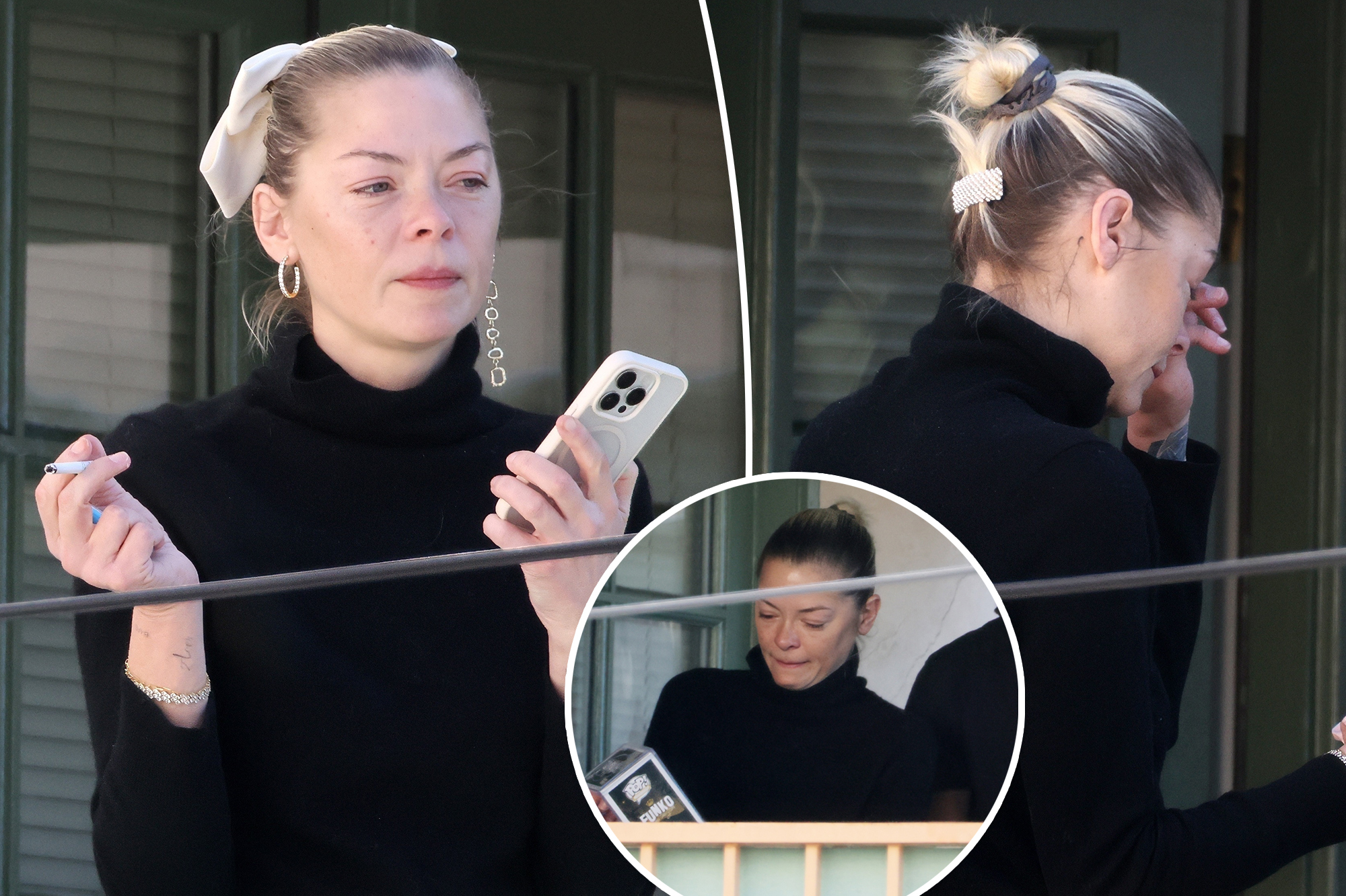 Page Six obtained exclusive photos of the actress wiping away tears and smoking a cigarette on the balcony of her new Hollywood, Calif., apartment Tuesday.