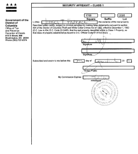 The affidavit in which Fishback declared that his D.C. condo is a “Class 1 Property,” which, according to the district, is a residential property “that is occupied and is used exclusively for nontransient residential dwelling purposes.”