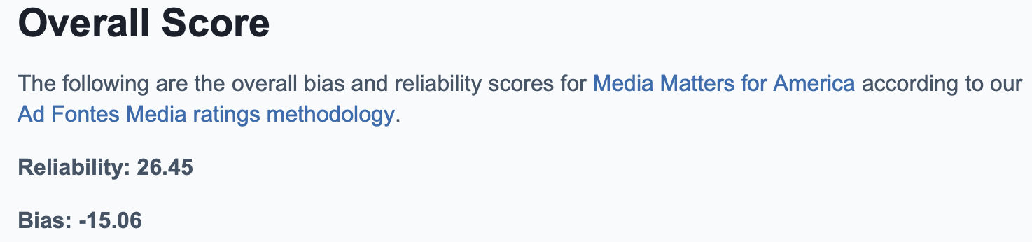 Ad Fontes says it rates news sources “based on a rigorous, non-partisan content analysis methodology” and markets its analysis to schools and teachers as a supposed tool for teaching media literacy. The group’s website says a “pod of at least three human analysts” including “one person who self-identifies as being right-leaning, one as center, and one as left-leaning” rate news stories, podcast episodes, and television programs.
