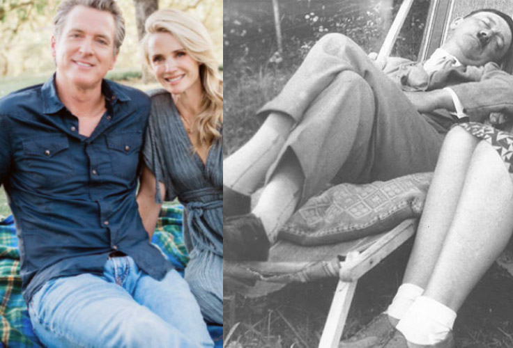 If we’re being uncharitable, we’d note the alarming postural similarities between Newsom and Adolf Hitler.