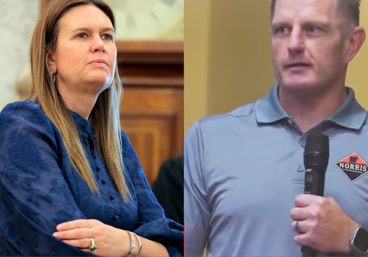 Sarah Huckabee Sanders (Anna Moneymaker/Getty Images), Bryan Norris (Bryan Norris YouTube)
