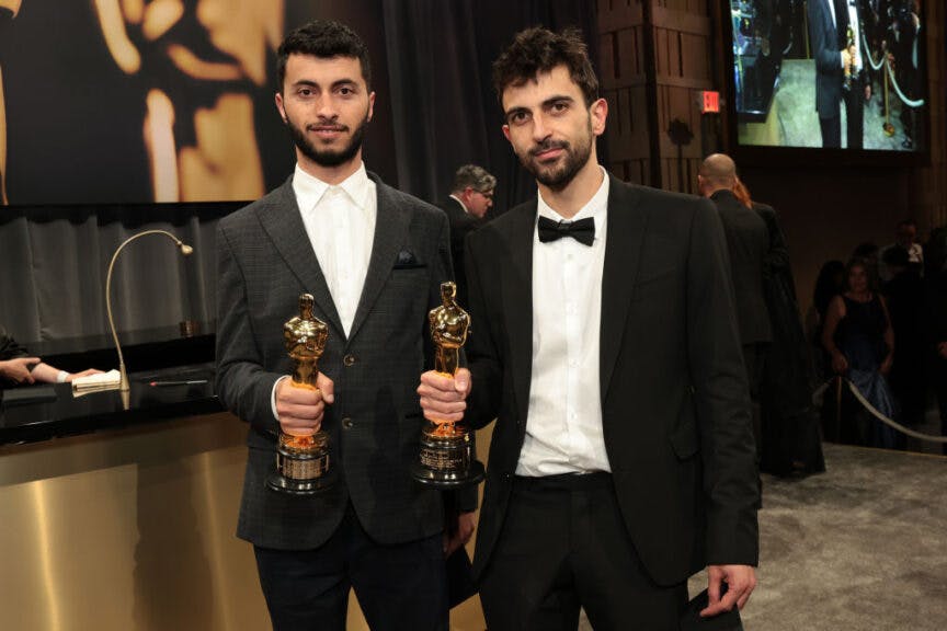 Basel Adra and Yuval Abraham (Photo by Monica Schipper/Getty Images)