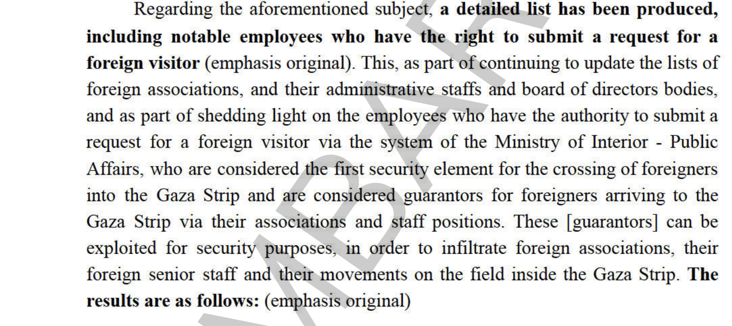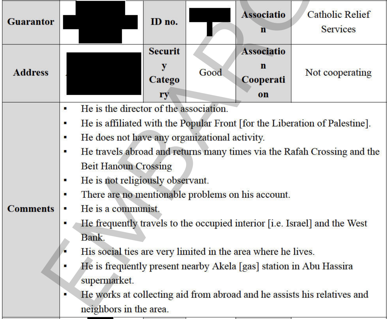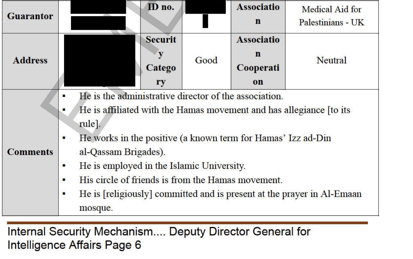 The December 2022 document lists the names and personal details for 55 individuals acting as guarantors at 48 separate NGOs in Gaza. The terror group identified at least 10 of the individuals it tapped for leadership roles within nonprofits as “Hamas members or supporters, or employed by Hamas-affiliated authorities.”