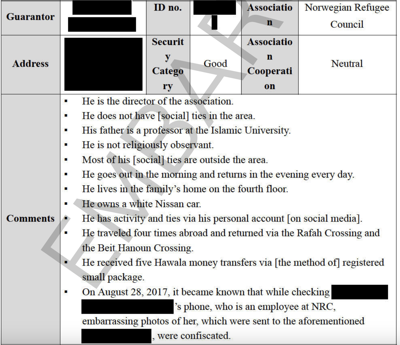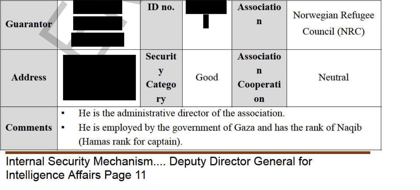 Those individuals include an administrative director with the United Kingdom-based Medical Aid for Palestinians whom the terror group described as a member of its military wing with a “circle of friends” within Hamas, a director with the nonprofit Human Appeal who is “affiliated with the Hamas movement” and held “several positions and management posts” within the terror group, and another administrative director with the Norwegian Refugee Council—which maintains an office in Washington, D.C., who “supports the Hamas movement” and served as a Hamas captain.