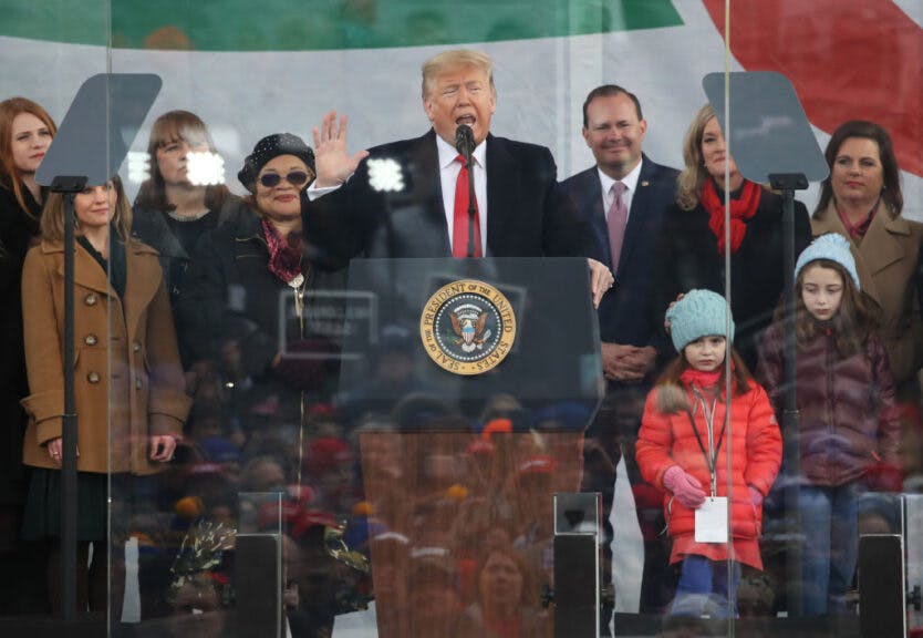 President Donald Trump speaks at the 2019 March For Life (Photo by Mark Wilson/Getty Images)