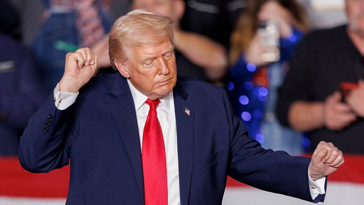In the middle of the speech, the president brought on stage two workers in the service industry to tout his tax legislation, in particular Trump’s campaign promise to end taxes on tips.