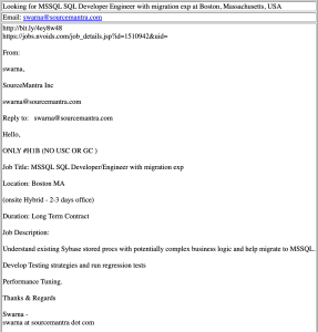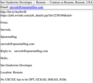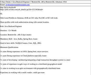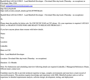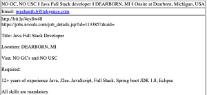 In a section titled “Visa requirement,” LanceSoft recruiter Riyaz Ansari wrote that “candidates must hold an active H1B visa”—and stated explicitly that American citizens need not apply.