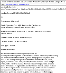 Because job advertisements are often posted by external staffing agencies, it is not always clear which party, the employer or the recruiter, is responsible for excluding U.S. citizens. Sometimes it is not even clear who the employer is, such as when one staffing agency, ARK Solutions, posted an ad for an unnamed client in Georgia that was seeking to build a “case management system that interfaces across multiple courts.”