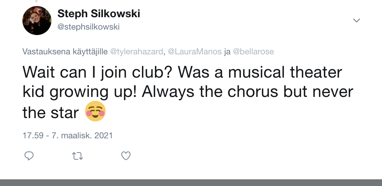 Over the years, Silkowski has discussed another interest of hers: musical theater, noting that she was “always the chorus but never the star.”