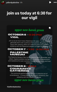 Yalies4Palestine is also hosting its Oct. 7 protest off-campus with a pop-up “Palestine Museum” that allows attendees to “explore exhibits tracing over a center of displacement and resistance … through art, archives, and lived testimony.”