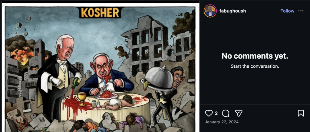 Congressional testimony from my colleague, Dr. Brandy Shufutinsky, highlighted one QFI-funded Arabic teacher at a public high school in Chicago. The teacher, Fadi Abughoush, is a member of the Chicago Arabic Teachers Council who has posted social media content calling slain Hamas leader Yahya Sinwar a king and showing an image of former president Joe Biden watching Israeli prime minister Benjamin Netanyahu eat dead “kosher” children. Abughoush’s Netanyahu post still appeared on his Instagram feed as of publication along with selfies with other QFI-affiliated Arabic teachers and K-12 students. QFI recognized Abughoush with a teacher of excellence award last August.