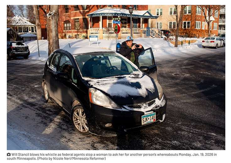 On the home front, the anti-ICE resistance in Minneapolis has thrived under the command of Will Stancil, a boy-faced professional activist with four university degrees. Conservatives have tried unsuccessfully to make fun of him. “Yall are pussies while he’s a lion,” wrote Hasan Piker, the Maoist beefcake influencer. Stancil was recently profiled in the Minnesota Reformer, which captured the now-iconic image of Stancil blowing a whistle and filming on his phone beside his even more iconic Honda Fit.