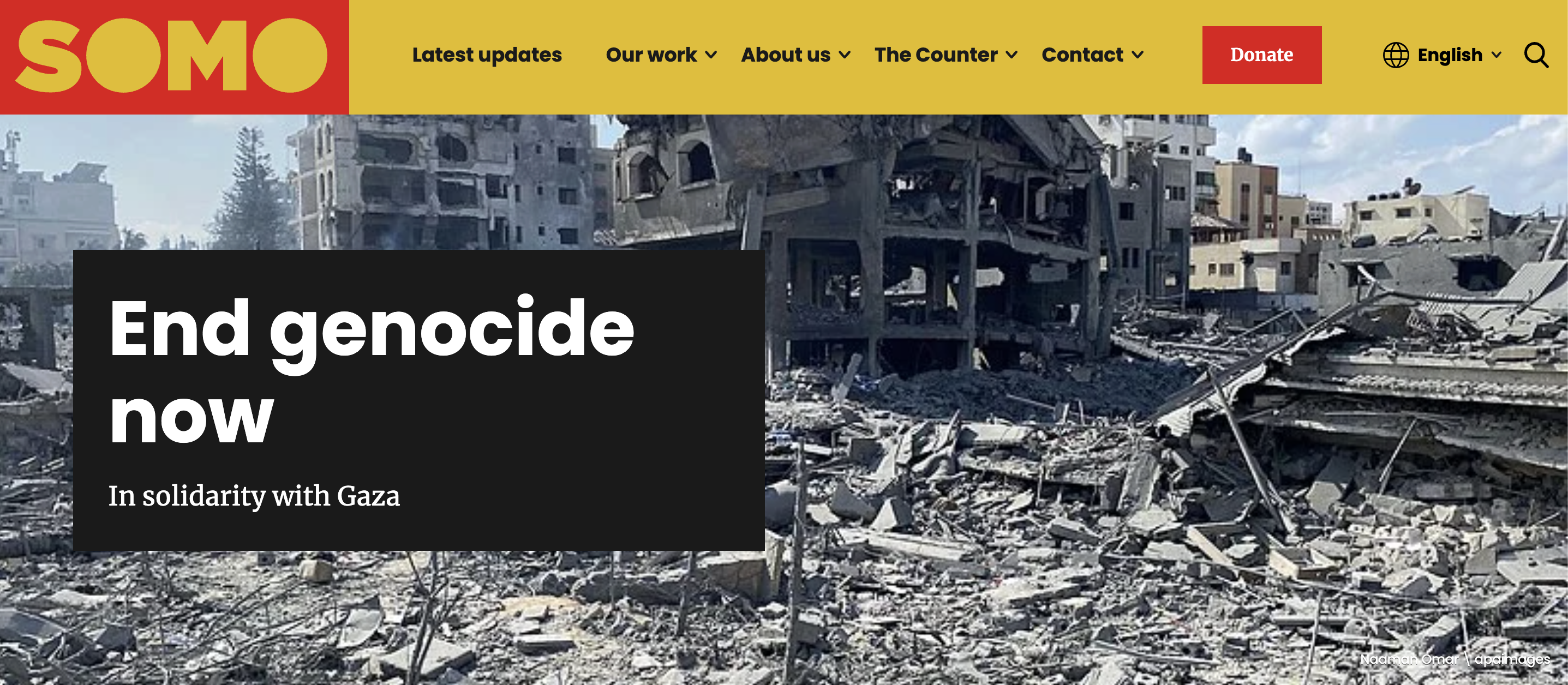 Corporations across the globe, SOMO says, must “decline any investment or funding from Israeli government entities, companies, or other institutions potentially linked to atrocities in Gaza.”