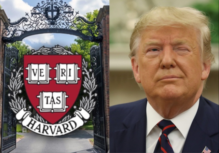Harvard (edited from Scott Eisen/Getty Images), Donald Trump (Chip Somodevilla/Getty Images)