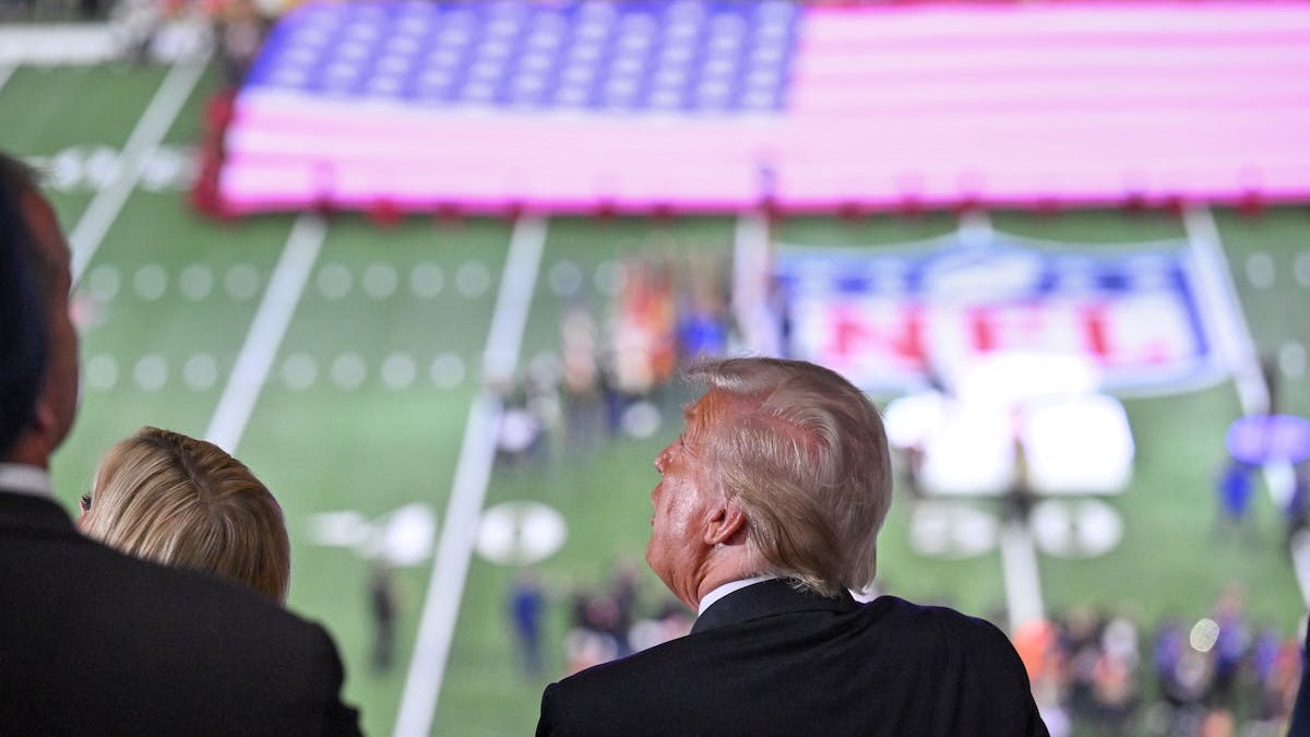“I’m anti-them. I think it’s a terrible choice. All it does is sow hatred. Terrible,” the president said. He also noted that his reason for skipping was that the Super Bowl is being played this year in California.
